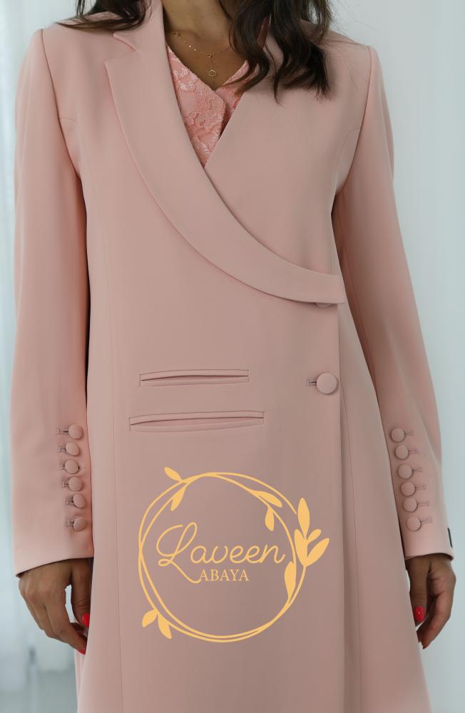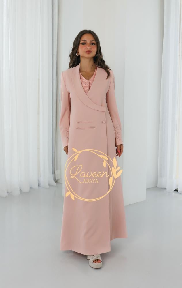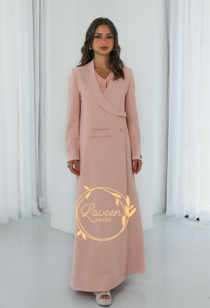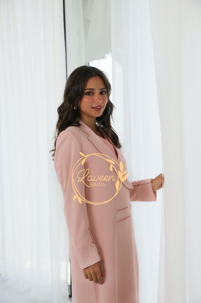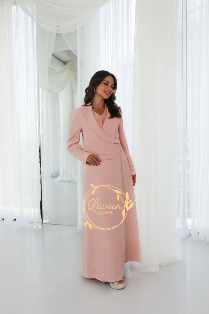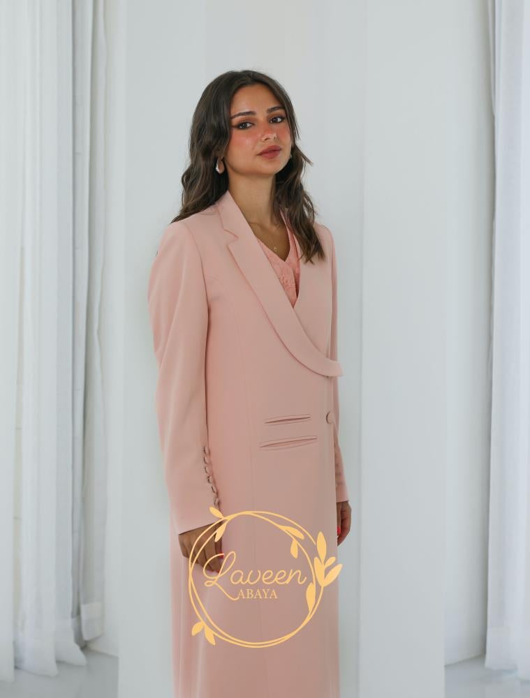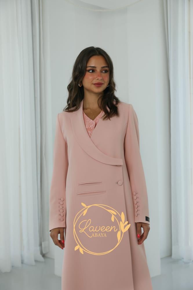 ✨ عباية بليزر مبطنة بتصميم راقٍ بلون خوخي ناعم يضفي لمسة أنثوية دافئة. تتميز بقصة فريدة تمنحك إطلالة عصرية محافظة، مع تفاصيل أنيقة على الأكمام تضيف لمسة فاخرة من التميز. خامة مريحة وانسيابية تجعلها مناسبة للمناسبات الرسمية والإطلالات اليومية الراقية