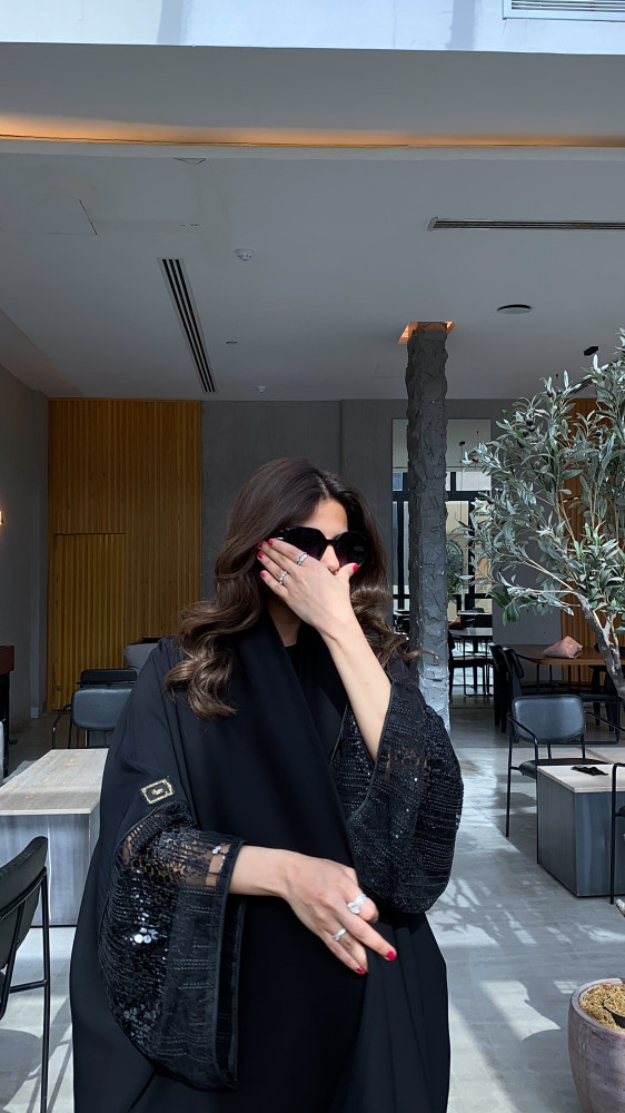 عباية صيفية راقية بقماش الفرسان الكوري الأصلي وكم من الدانتيلالفرنسي مزينة بقيطان باللون الأسود على أطراف الكم والطرحة وقصةنص بشت مناسبة لجميع أشكال الجسم