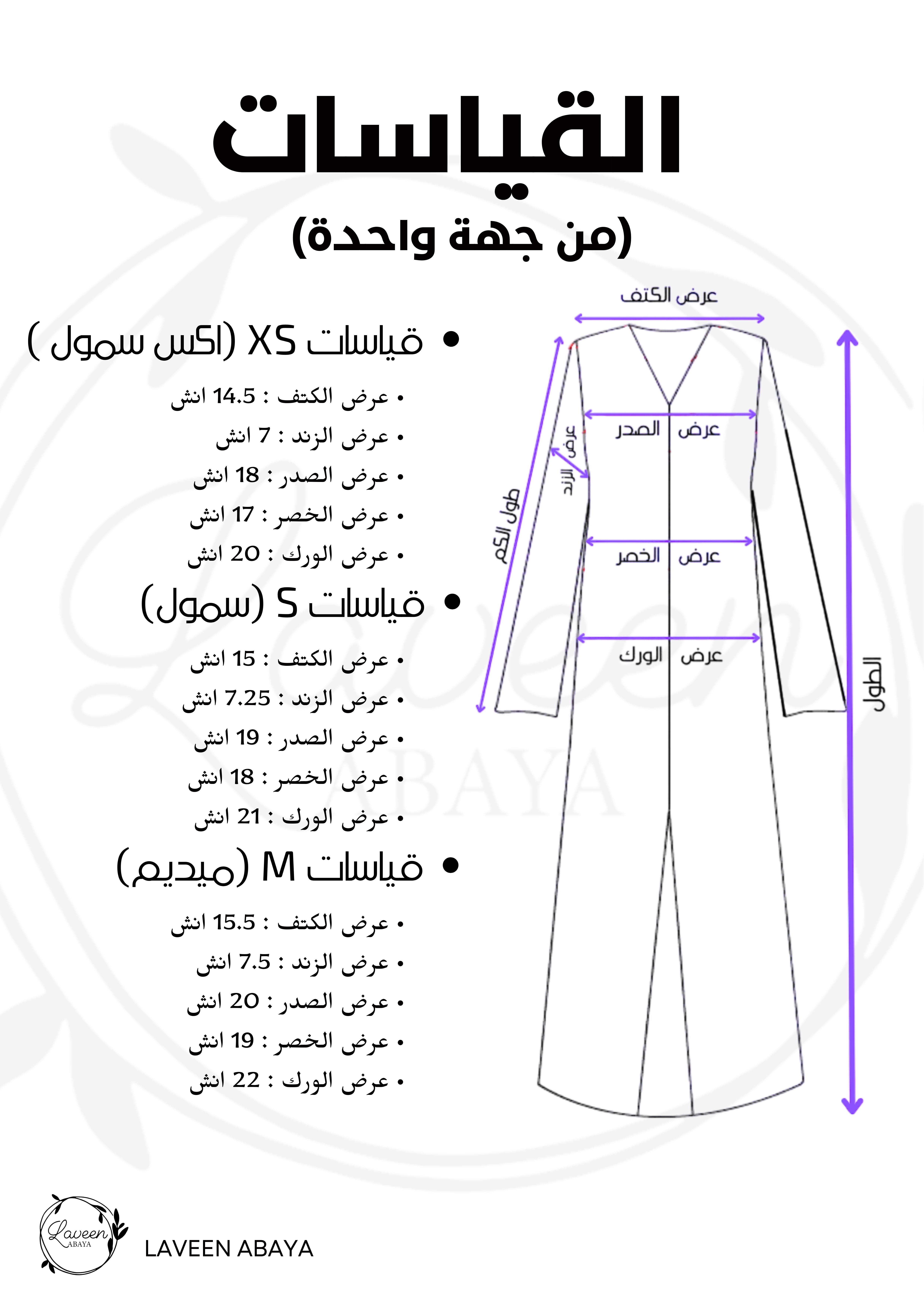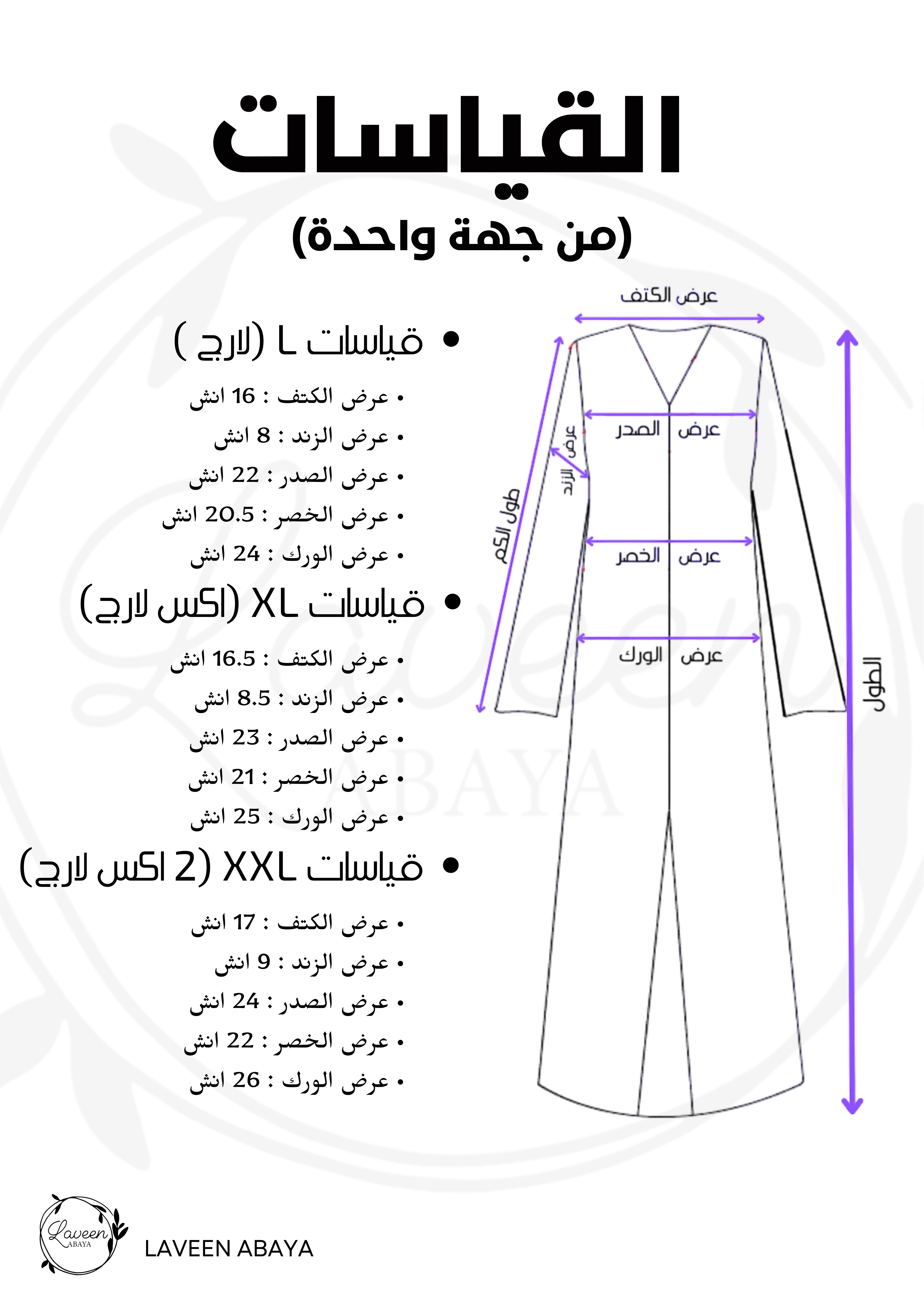 ستصلك العباية بالمقاسات التالية :