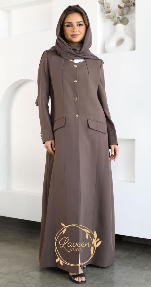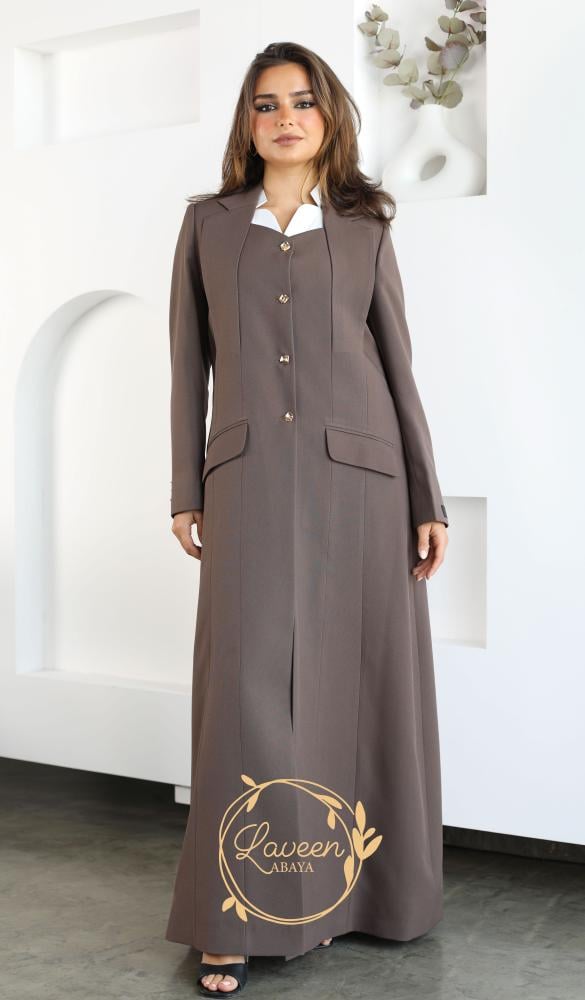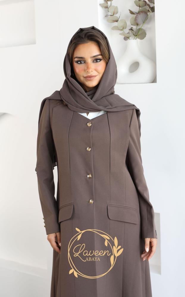 An elegant and distinctive formal blazer in earthy brown and a weak-resistant Vietnamese crepe cloth, an elegant and new formal collar cut on the chest and gold metal buttons that added beauty and elegance to the piece and made it an elegant and sophisticated piece suitable for work, formal interviews and special occasions to give you an elegant and distinctive appearance.