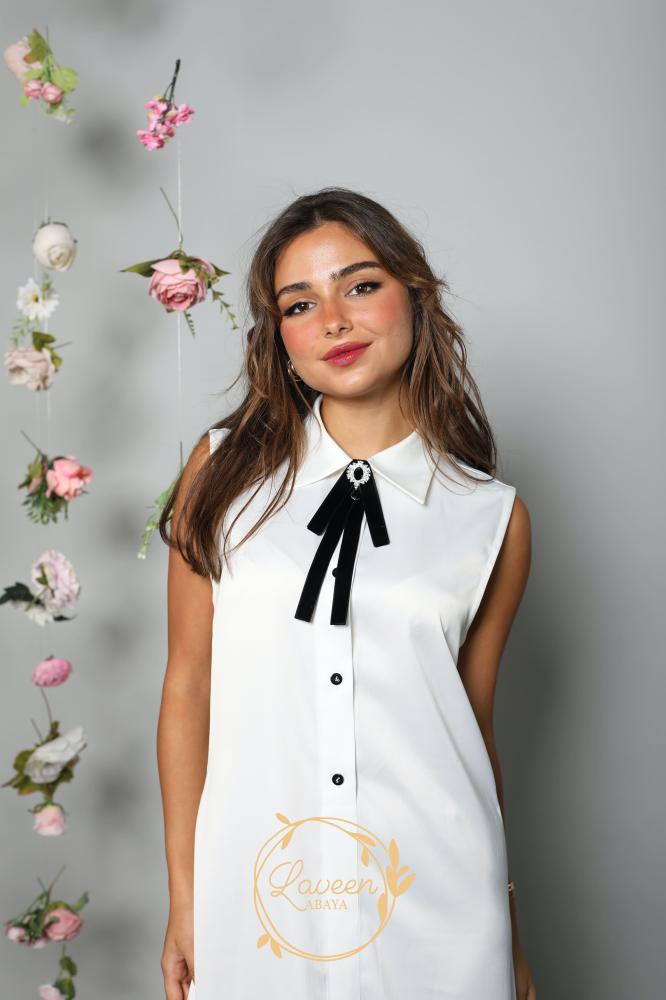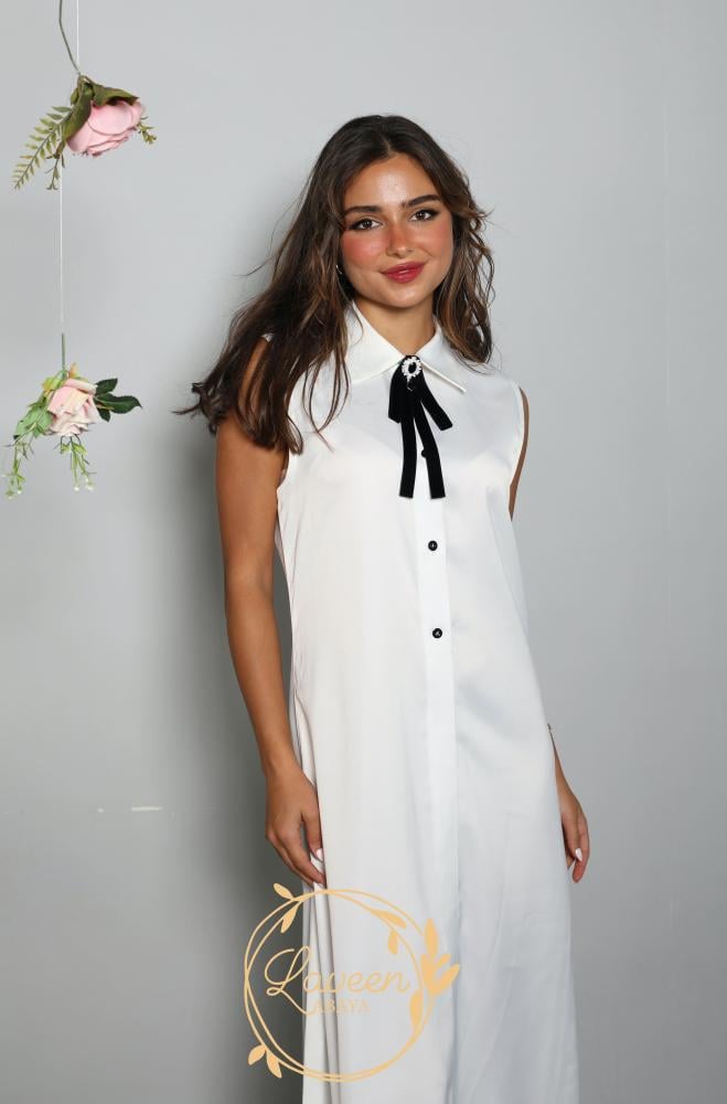 Summer dress without sleeves collar shirt and crepe fabric